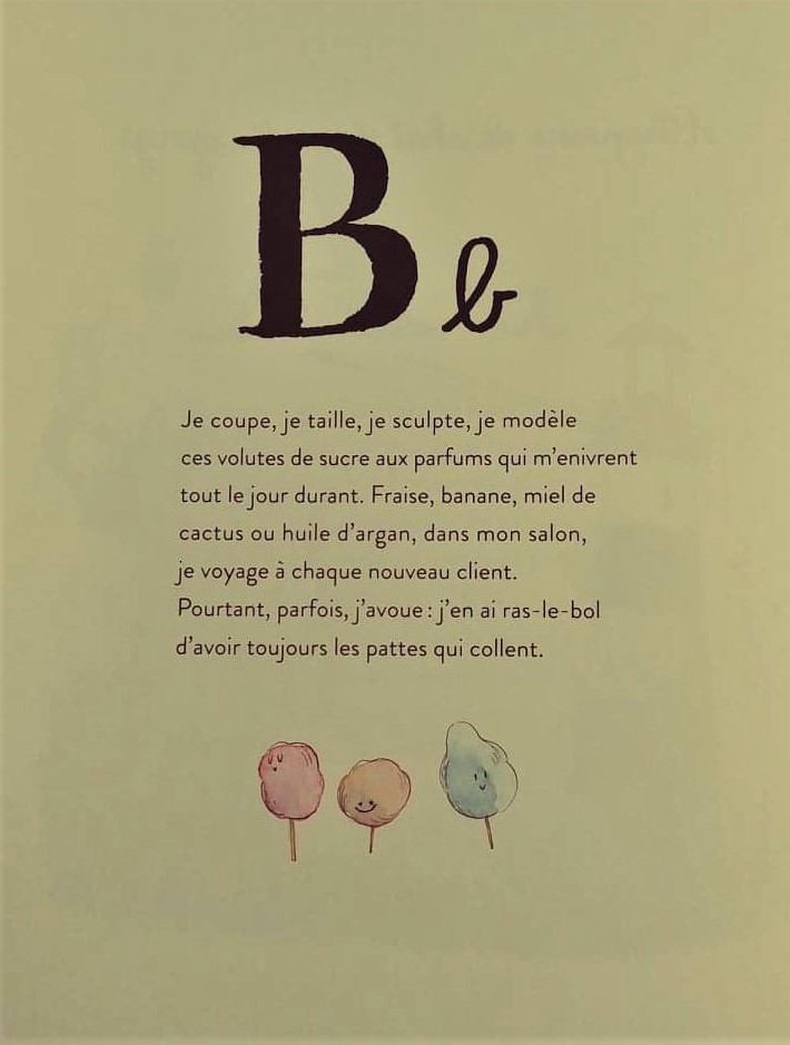Comme son titre l'indique, c'est un abécédaire. C'est donc sous cette forme que nous allons découvrir 26 métiers. Mais attention, ceux-ci n'ont rien de banal.