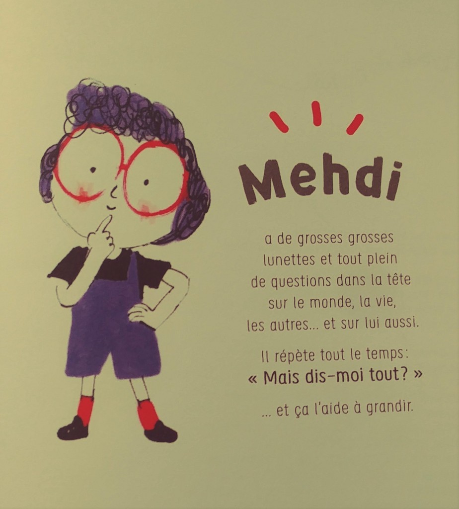 "Mehdi a de grosses grosses lunettes et tout plein de questions dans la tête sur le monde, la vie, les autres... et sur lui aussi.
