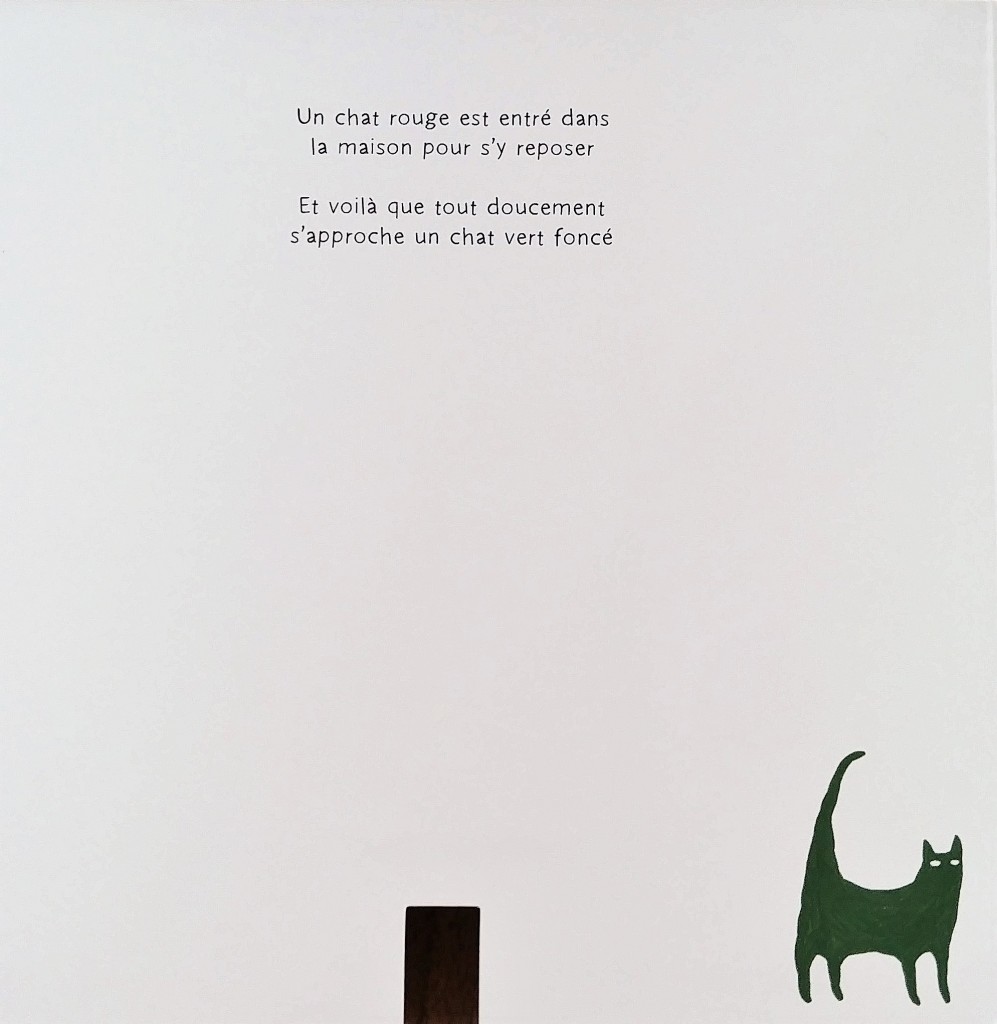 Ainsi, on peut voir apparaître un bout du pelage coloré des uns et des autres dans l'encadrement des fenêtres grâce à un système de trous. Si au début il y a une seule ouverture, à la fin du livre, la petite maison est remplie de chats et habillée de toutes les jolies couleurs de ses petits habitants.