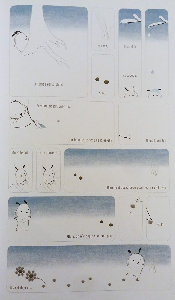 Le dessin de Sandrine Kao est simplement magnifique. C'est tellement apaisant de contempler ces vignettes avec ou sans texte et surtout, de se laisser porter par la douceur de son trait et des couleurs. On tourne les pages, émerveillés. Il n'y a pas d'autres mots.