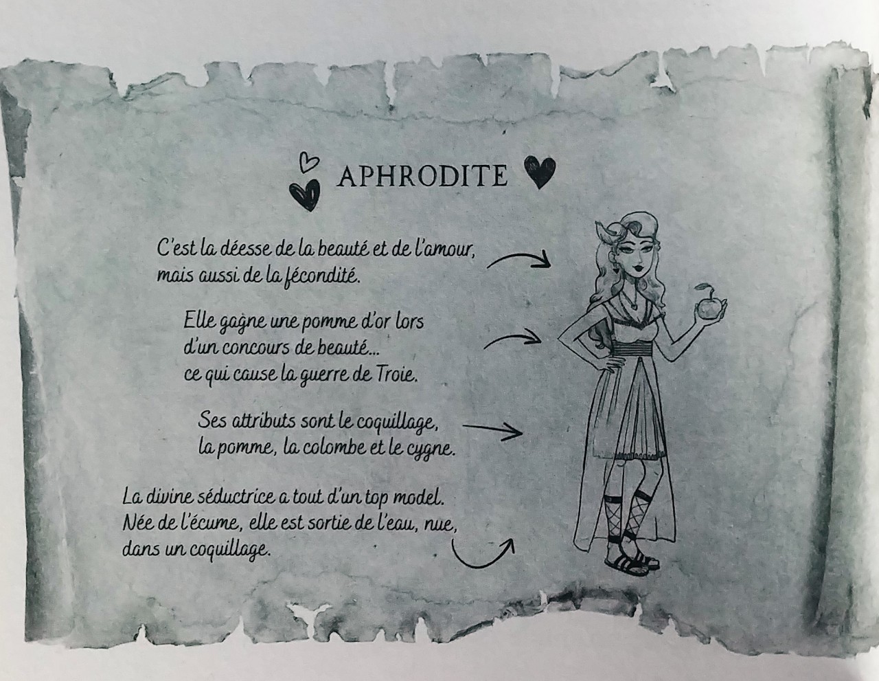 En compagnie d'Aphrodite, déesse de l'Olympe revenue sur Terre dans la peau d'une ado, je me suis prise au jeu de ce camp ayant pour thématique un sujet qui depuis toujours me passionne : la mythologie.