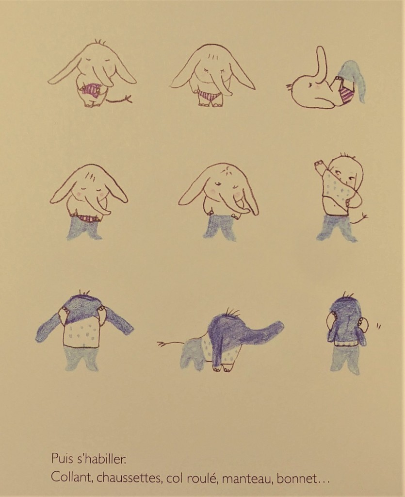 L'hiver sous la neige, un sujet tout doux et amusant qui colle parfaitement à l'univers rassurant de ce petit éléphant.