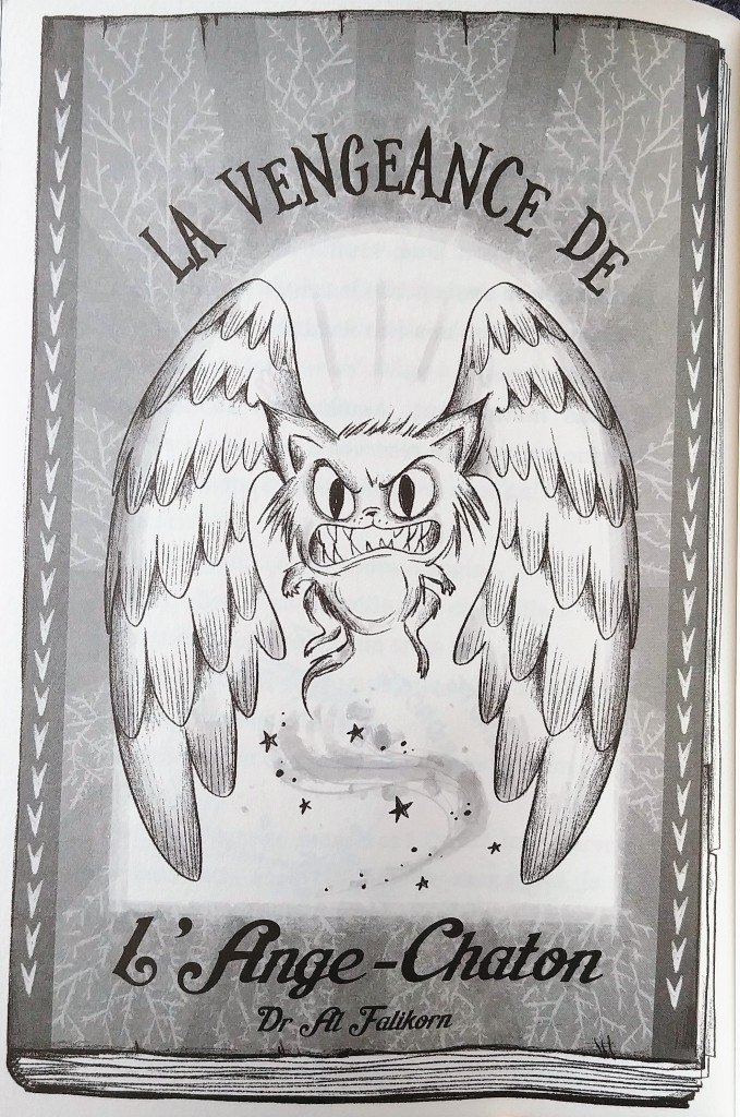 “Amélia Fang! Ne fais pas ta pipistrelle, la gronda sa mère. Tout d’abord, le Poubel n°5 est le plus délicieux parfum de Nocturnia. Il est composé de bave de chauve-souris et d’une touche de banane pourrie, figure-toi ! Ensuite, le Bal barbare est une tradition familiale. C’est l’occasion de montrer à quel point nous sommes Fang-astiques.” p14-15