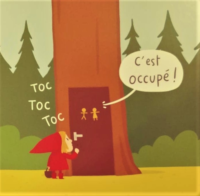 Le petit chaperon rouge a envie de faire pipi (ou autre chose d'ailleurs). Ouf ! Des toilettes ! Sauf qu'il y a déjà quelqu'un. Il faut donc patienter.